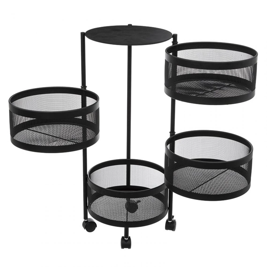 Pratique, esthétique et maniable, découvrez la desserte ronde 4 paniers en métal noir Mayaj de la marque 5Five. En cuisine comme dans la salle de bain, vous apprécierez ses 4 paniers de rangement 32 cm. A monter soi même. Dimensions : D. 33 x H. 76 cm. Poids : 3,5 kg. Matière : Métal. Marque : 5Five.