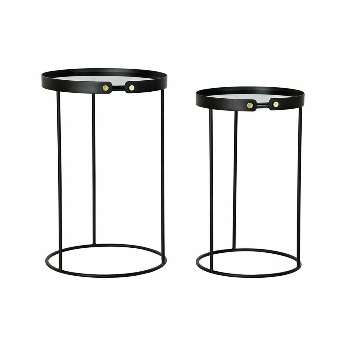 Vous voulez donner une touche d’originalité à votre maison ? Vous y arriverez grâce au Set de 2 Tables Gigognes DKD Home Decor Verre Noir Doré Métal (38 x 38 x 59 cm).