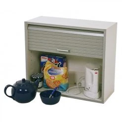 Meuble de Cuisine Blanc Alu Hauteur 51.6 cm à poser sur le plan de travail ou à suspendre Largeur 60 cm x Hauteur 50 ou 51.6 cm x Profondeur 25 cm (dimensions standards avec la plupart des cuisines équipées). Il se glisse entre le plan de travail et l’élément haut. Coloris : – Le meuble est blanc avec des chants avant coloris aluminium – Le rideau est de coloris aluminium Descriptif : – 1 Multiprise (pour 3 prises électriques) – Equipé d’un rideau coulissant de haut en bas – 1 tablette réglable en hauteur. – Le meuble peut être suspendu au mur (fixations fournies) ou posé sur le plan de travail. – Le caisson (bas du meuble) est livré avec le meuble mais peut ne pas être installé. Vous pouvez ainsi glisser directement des objets du plan de travail à l’intérieur du meuble sans les lever (cafetière, grille-pain,….). Caractéristiques techniques : – Panneaux de particules de bois mélaminés (2 faces) qualité E1 épaisseur 16 mm – Rideau : Panneaux de fibres de bois (MDF) revêtus d’un décor papier coloris aluminium. – Livré démonté (montage facile). – Garantie : 2 ans – Meuble Eco-conçu – Fabriqué en France Dimensions utiles : – Tablette : Largeur 56.8 cm Profondeur 20 cm – Intérieur : Largeur 56.8 cm Hauteur 39.4 cm Profondeur 20 cm Livraison gratuite, sous 7 – 10 jours du lundi au vendredi, au rez-de-chaussée