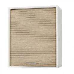 Meuble Elément haut de Cuisine coloris Blanc + Rideau Alu, Chêne ou Noir. A poser sur le plan de travail ou à suspendre à mur Largeur 60 cm x Hauteur 72 cm x Profondeur 35 cm Il fait les mêmes dimensions que les éléments hauts de la plupart des cuisines équipées. Descriptif : – Equipé d’un rideau coulissant de haut en bas – 2 tablettes réglables en hauteur. – Le meuble peut être suspendu au mur (fixations fournies) ou posé sur le plan de travail. – Le caisson (bas du meuble) est livré avec le meuble mais peut ne pas être installé. Hauteur Totale du meuble : 70.4 cm, sans la partie basse Vous pouvez ainsi glisser directement des objets du plan de travail à l’intérieur du meuble sans les lever. (cafetière, grille-pain,….). La hauteur en gardant le caisson est de 72 cm Caractéristiques techniques : – Panneaux de particules de bois mélaminés (2 faces) qualité E1 épaisseur 16 mm – Arrière : panneaux de fibres de bois (MDF), épaisseur 5 mm revêtu d’un décor – Rideau : Baguettes de 4 cm épaisseur 4 mm, en Panneaux de fibres de bois (MDF), revêtues d’un décor et collées sur une toile en coton. – Garantie : 2 ans – Meuble Eco-conçu – Fabriqué en France Montage : – Meuble Livré démonté – Difficulté de montage : facile – En bas de la page, vous pouvez télécharger la notice de montage. – Une notice de montage papier sera jointe au meuble. Dimensions utiles : – Tablettes : Largeur 56.8 cm Profondeur 30 cm – Intérieur : Largeur 56.8 cm Hauteur 55.1 cm Profondeur 30 cm Livraison : – Livré en 2 colis : 20 kg pour la structure du meuble et 1.5 kg pour le rideau. – Livraison gratuite, sous 7 – 10 jours du lundi au vendredi, au rez-de-chaussée.