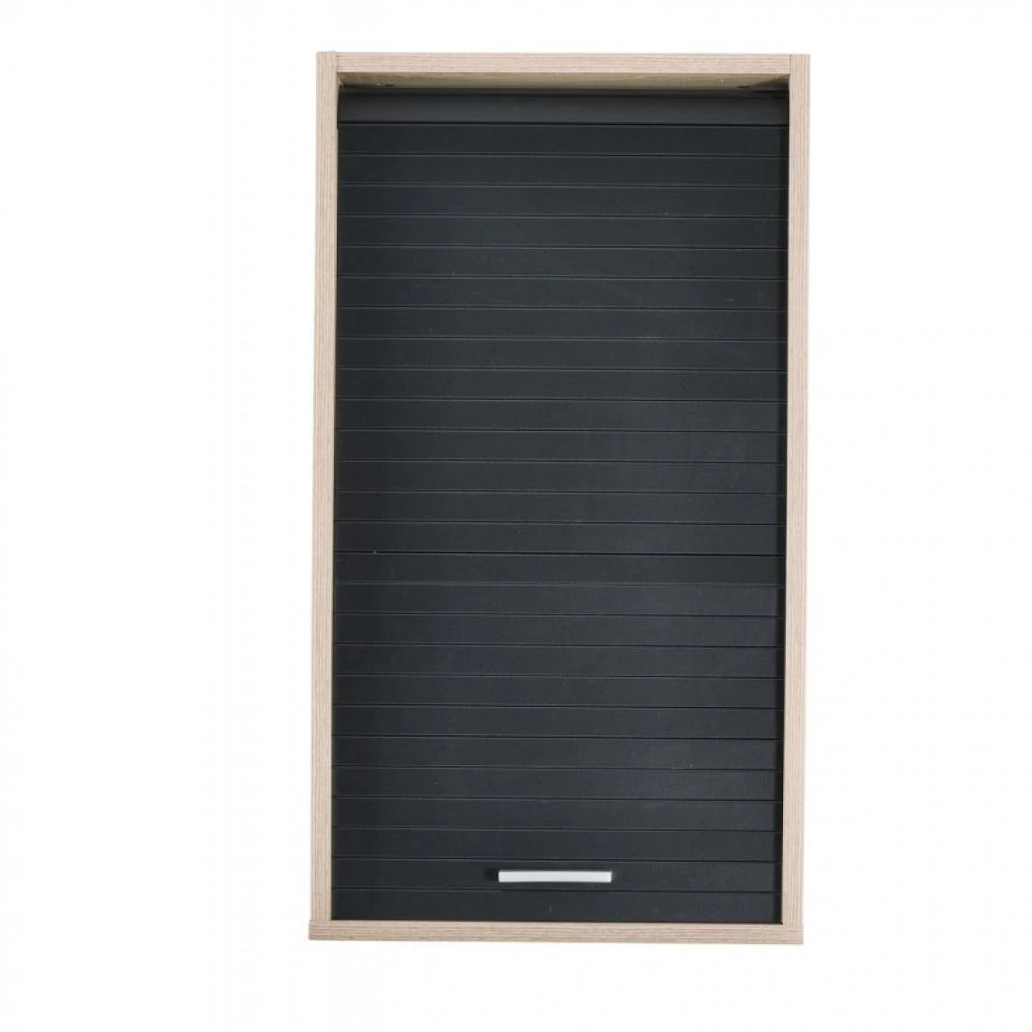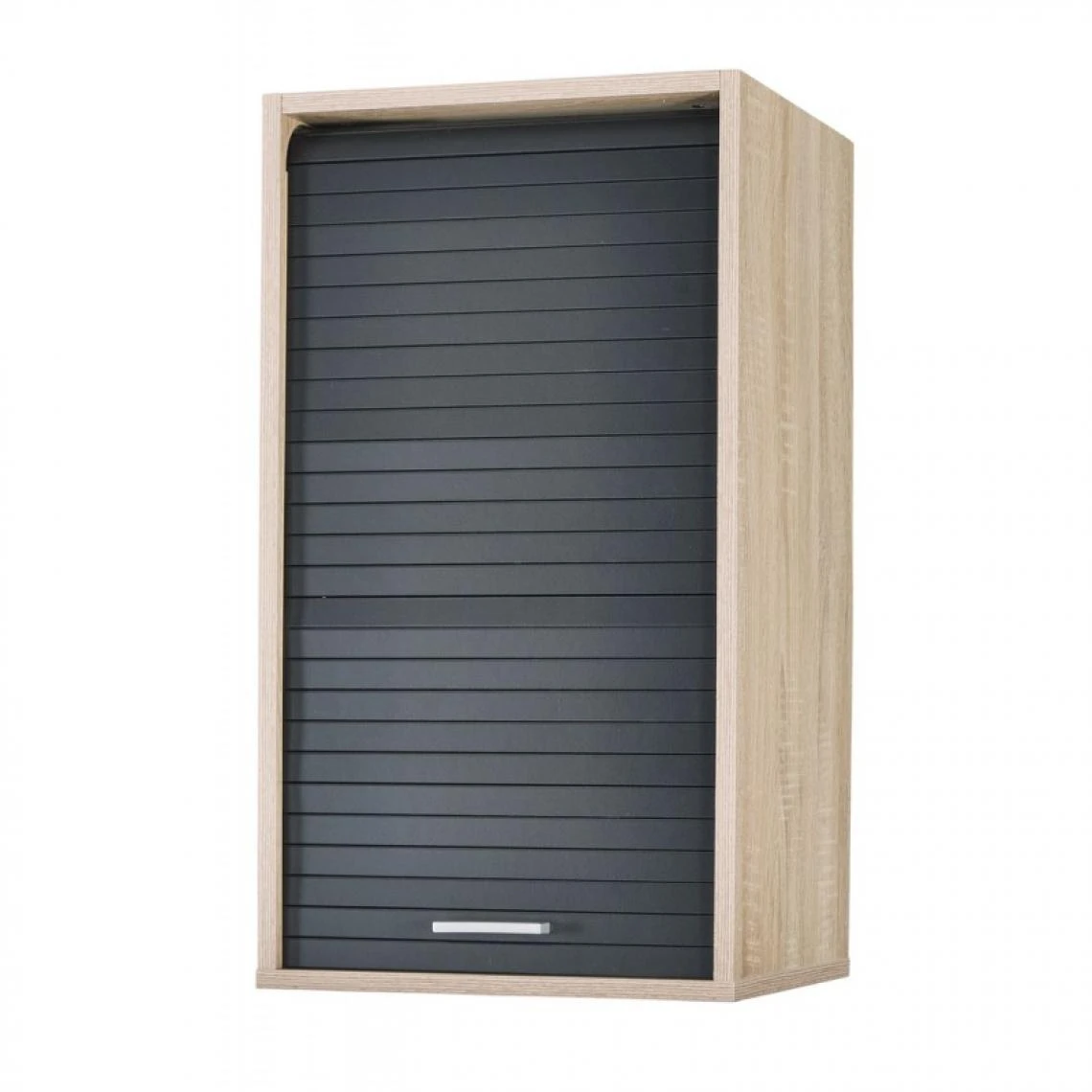 Meuble Elément haut de Cuisine coloris Chêne + Rideau Blanc, Alu ou Noir. A poser sur le plan de travail ou à suspendre à mur Largeur 40 cm x Hauteur 72 cm x Profondeur 35 cm Il fait les mêmes dimensions que les éléments hauts de la plupart des cuisines équipées. Descriptif : – Equipé d’un rideau coulissant de haut en bas – 2 tablettes réglables en hauteur. – Le meuble peut être suspendu au mur (fixations fournies) ou posé sur le plan de travail. – Le caisson (bas du meuble) est livré avec le meuble mais peut ne pas être installé. Hauteur Totale du meuble : 70.4 cm, sans la partie basse Vous pouvez ainsi glisser directement des objets du plan de travail à l’intérieur du meuble sans les lever. (cafetière, grille-pain,….). La hauteur en gardant le caisson est de 72 cm Caractéristiques techniques : – Panneaux de particules de bois mélaminés (2 faces) qualité E1 épaisseur 16 mm – Arrière : panneaux de fibres de bois (MDF), épaisseur 5 mm revêtu d’un décor – Rideau : Baguettes de 4 cm épaisseur 4 mm, en Panneaux de fibres de bois (MDF), revêtues d’un décor et collées sur une toile en coton. – Garantie : 2 ans – Meuble Eco-conçu – Fabriqué en France Montage : – Meuble Livré démonté – Difficulté de montage : facile – En bas de la page, vous pouvez télécharger la notice de montage. – Une notice de montage papier sera jointe au meuble. Dimensions utiles : – Tablettes : Largeur 36.8 cm Profondeur 30 cm – Intérieur : Largeur 36.8 cm Hauteur 55.1 cm Profondeur 30 cm Livraison : – Livré en 2 colis : 15 kg pour la structure du meuble et 1.5 kg pour le rideau. – Livraison gratuite, sous 7 – 10 jours du lundi au vendredi, au rez-de-chaussée.