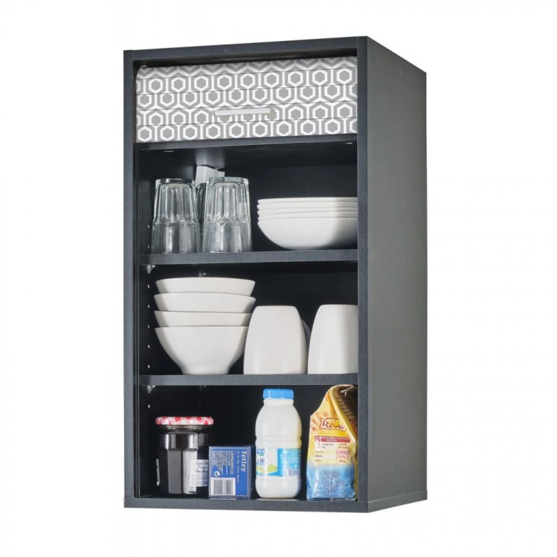 Points forts Simmob Meuble Cuisine Noir 40×72 Face Imprimée – Coloris Rideau: Hexagones Gris 521