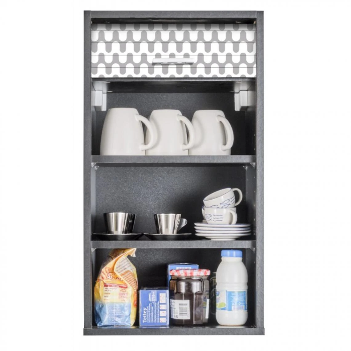 Points forts Simmob Meuble Cuisine Noir 40×72 Face Imprimée – Coloris Rideau: Vagues Grises 810