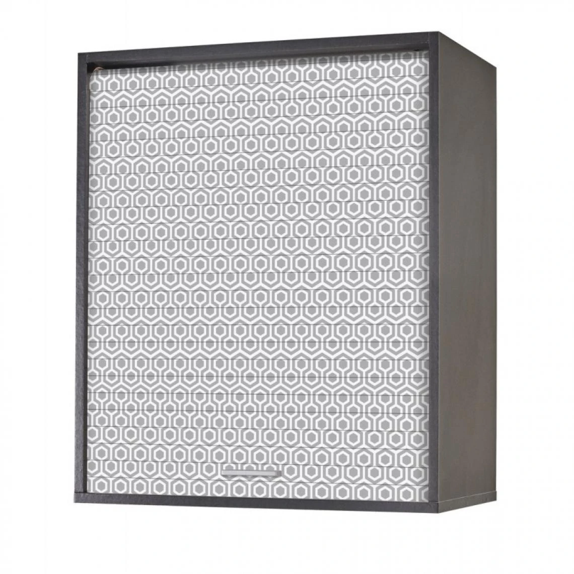 Points forts Simmob Meuble Cuisine Noir 60×72 Face Imprimée – Coloris Rideau: Hexagones Gris 521