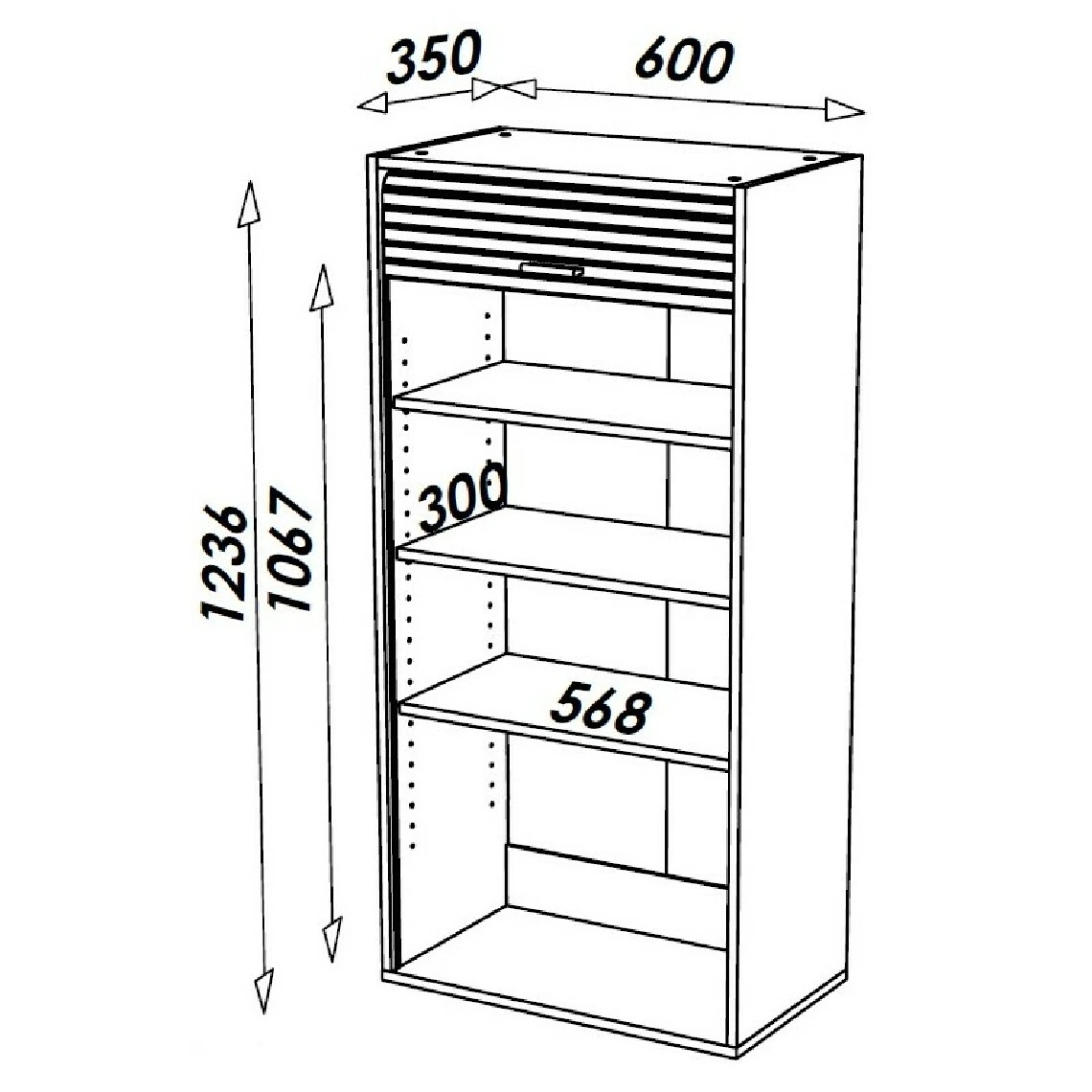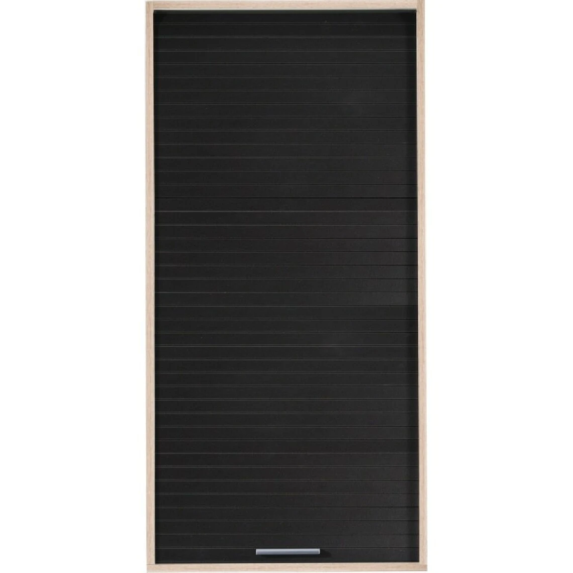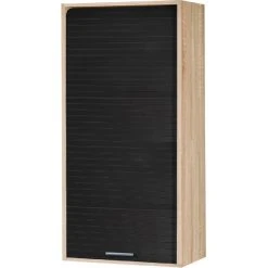 Meuble de Cuisine coloris Chêne et Noir à poser sur le plan de travail ou à suspendre Largeur 60 cm x Hauteur 122 ou 123.6 cm x Profondeur 35 cm (dimensions standards avec la plupart des cuisines équipées) Il fait la même hauteur que les éléments hauts standards. Descriptif : – Equipé d’un rideau coulissant de haut en bas – 3 tablettes réglables en hauteur. – Le meuble peut être suspendu au mur (fixations fournies) ou posé sur le plan de travail. – Le caisson (bas du meuble) est livré avec le meuble mais peut ne pas être installé. Vous pouvez ainsi glisser directement des objets du plan de travail à l’intérieur du meuble sans les lever. (cafetière, grille-pain,….). La hauteur du meuble avec le caisson est de 123.6 cm / sans le caisson : 122 cm Caractéristiques techniques : – Panneaux de particules de bois mélaminés (2 faces) qualité E1 épaisseur 16 mm coloris imitation chêne. – Rideau : Panneaux de fibres de bois revêtus d’un décor coloris noir. – Livré démonté (montage facile). – Garantie : 2 ans – Meuble Eco-conçu – Fabriqué en France Dimensions utiles : Tablette : Largeur 56.8 cm Profondeur 30 cm Intérieur : Largeur 56.8 cm Hauteur 106.7 cm Profondeur 30 cm Livraison gratuite, sous 7 – 10 jours du lundi au vendredi, au rez-de-chaussée.