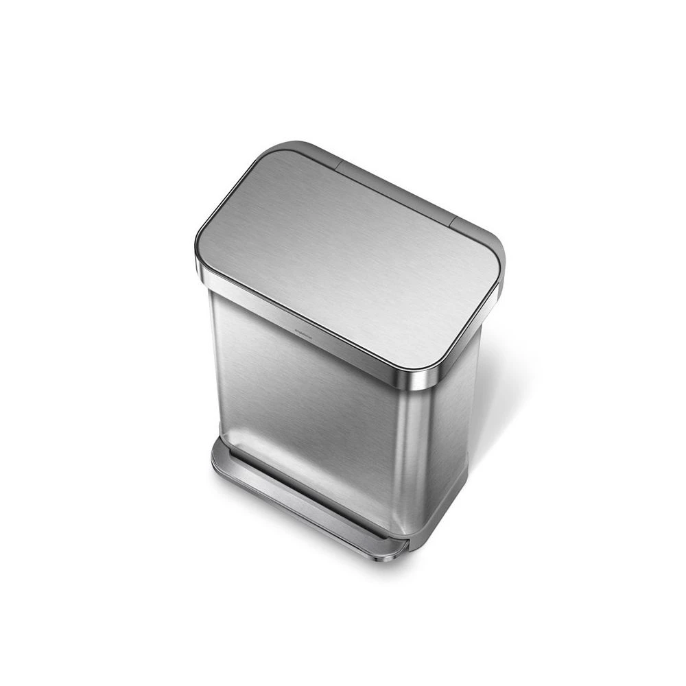 poubelle réctangulaire à pédale 45l inox brossé – cw2024 – Notre nouvelle poubelle à pédale SIMPLEHUMAN CW2024 en acier inoxydable est dotée d’une réserve à sacs innovante, qui conserve et distribue les sacs depuis l’intérieur de la poubelle, assurant ainsi un changement de sac plus rapide.L’anneau de bordure en acier inoxydable maintient le sac en place et permet de le garder caché. Grâce à l’absence de bac intérieur, il y a plus de place pour les déchets. La pédale large et robuste a été conçue pour durer et notre technologie brevetée lid shox assure une fermeture lente et silencieuse à chaque fois.Les sacs code M peuvent être facilement conservés dans la réserve à sacs.Réserve à sacsGardez vos sacs poubelle à portée de main. Récupérez-les un à un depuis l’intérieur de la poubelle pour un changement de sac plus rapide.Propre et fiableL’anneau de bordure en acier inoxydable se lève facilement pour un changement de sac rapide et facile, et se rabat ensuite pour maintenir le sac en place et le garder caché. – Type : Poubelle.
