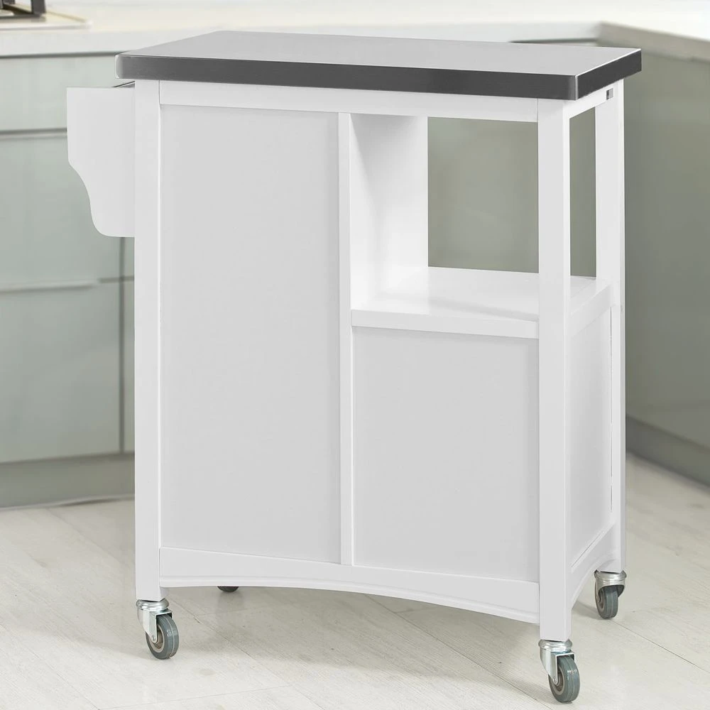Matériau Bois massif : Plan de travail en Acier Inox, les autres parties en bois de pin et MDF. Roulettes en caoutchouc.