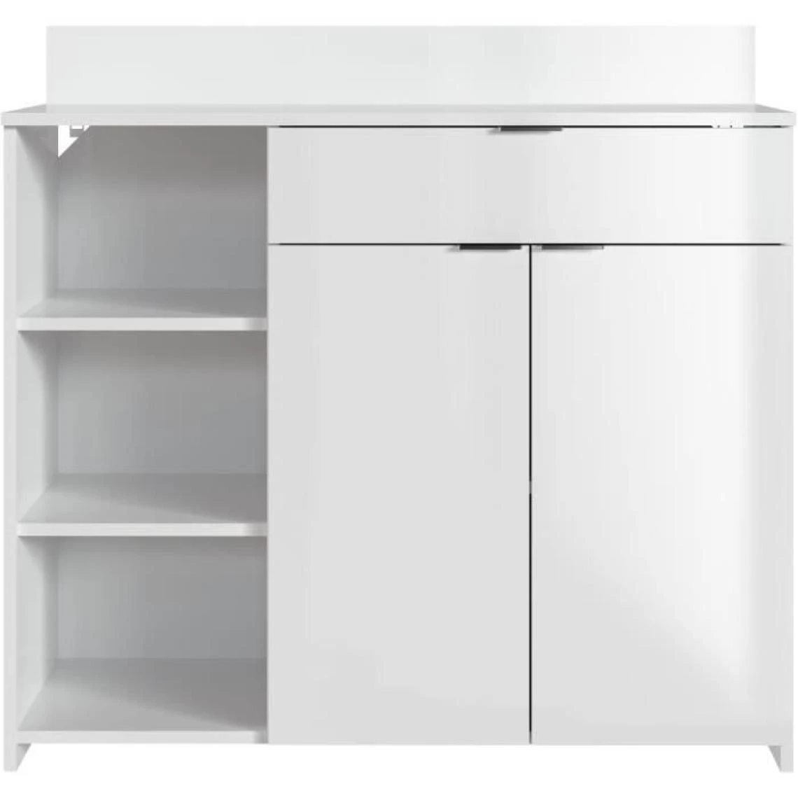 Buffet Cuisine fabriqué en mélamine blanc mat. 2 portes + 1 tiroir + étagères – Grande capacité de rangement.