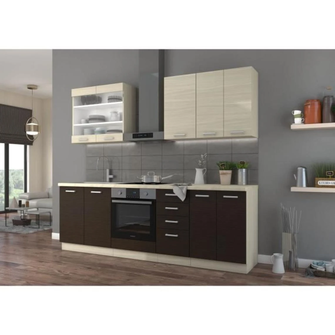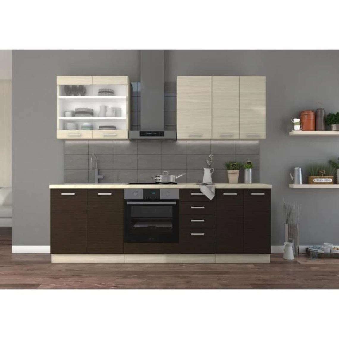 Points forts Tbs CHAMONIX Cuisine complète – Mélamine décor chêne foncé – L 240 x P 60 x H 82 cm – Plan de travail non inclus