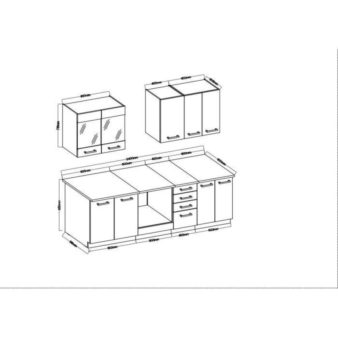 Cuisine complète CHAMONIX 240 cm composée de 1 meubles sous evier 80 cm, 1 meuble four 60 cm, 1 meuble bas 4 tiroirs 40 cm, 1 meuble bas 60 cm, 1 meuble haut vitre 80 cm, 1 meuble haut 40 cm, 1 meuble haut 60 cm – Plan de travail non inclus