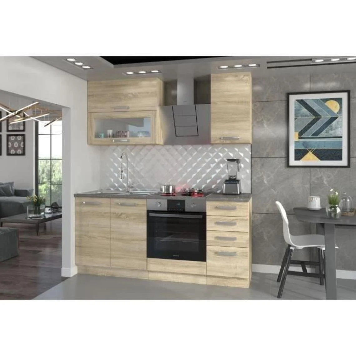 Points forts Tbs Cuisine complete L 180 cm avec plan de travail – Décor chene sonoma – LASSEN