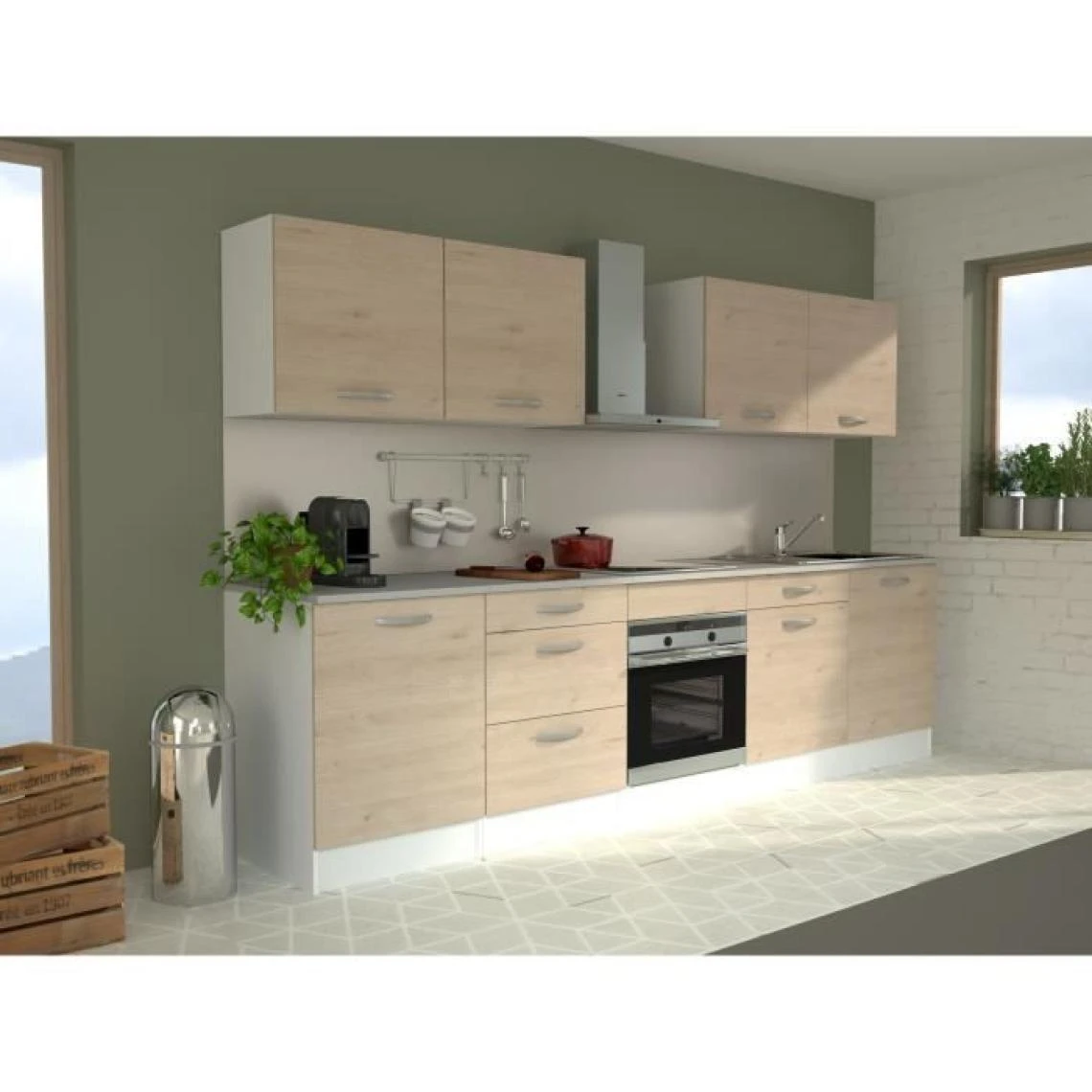 Points forts Tbs Cuisine complete OSLO – L 300 cm – Décor chene – Plan de travail inclus