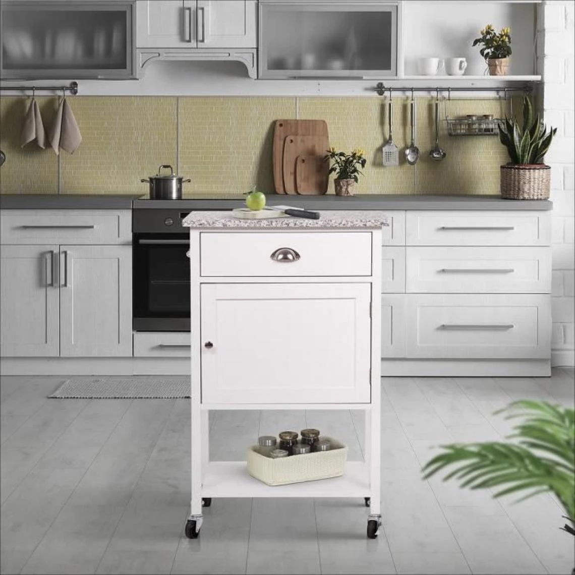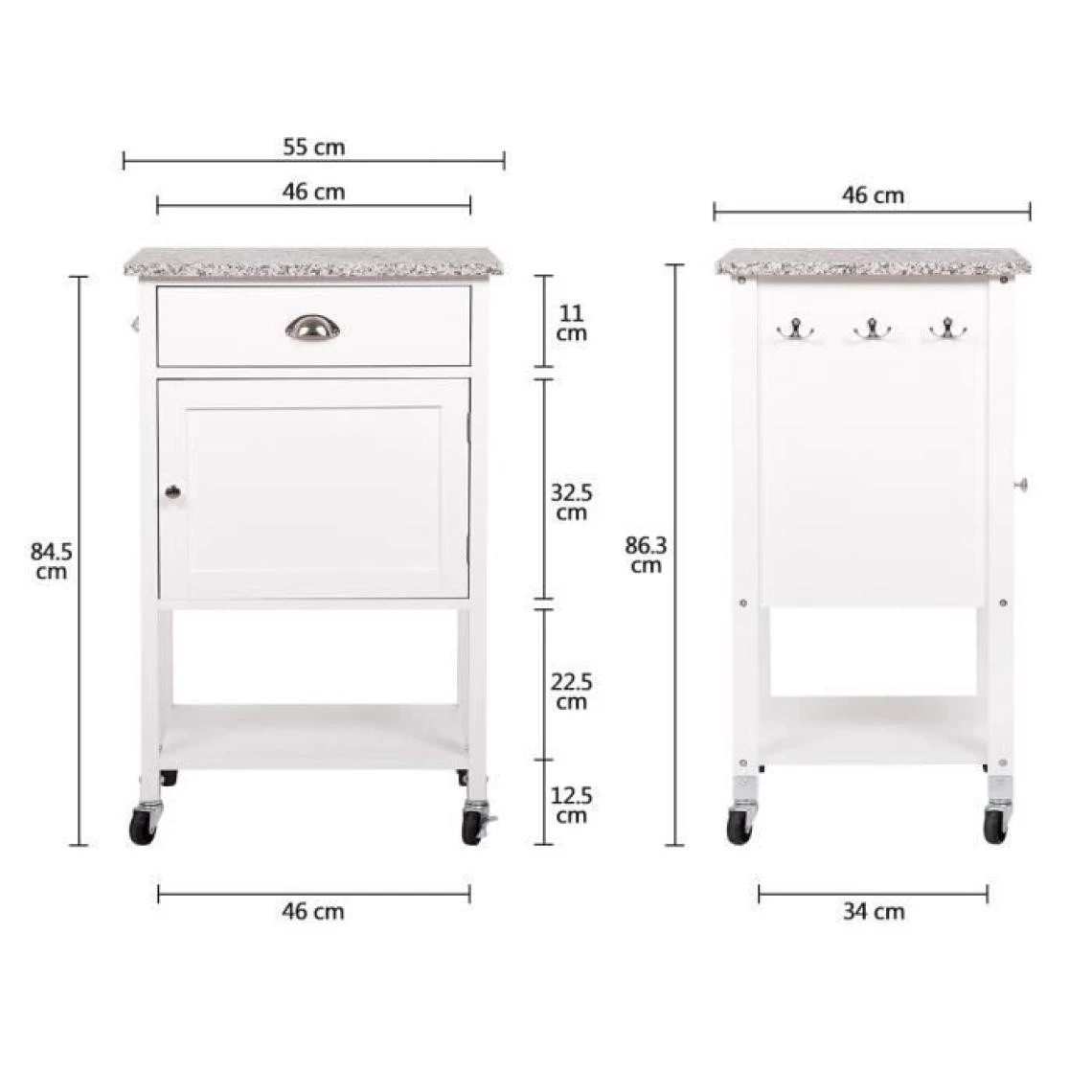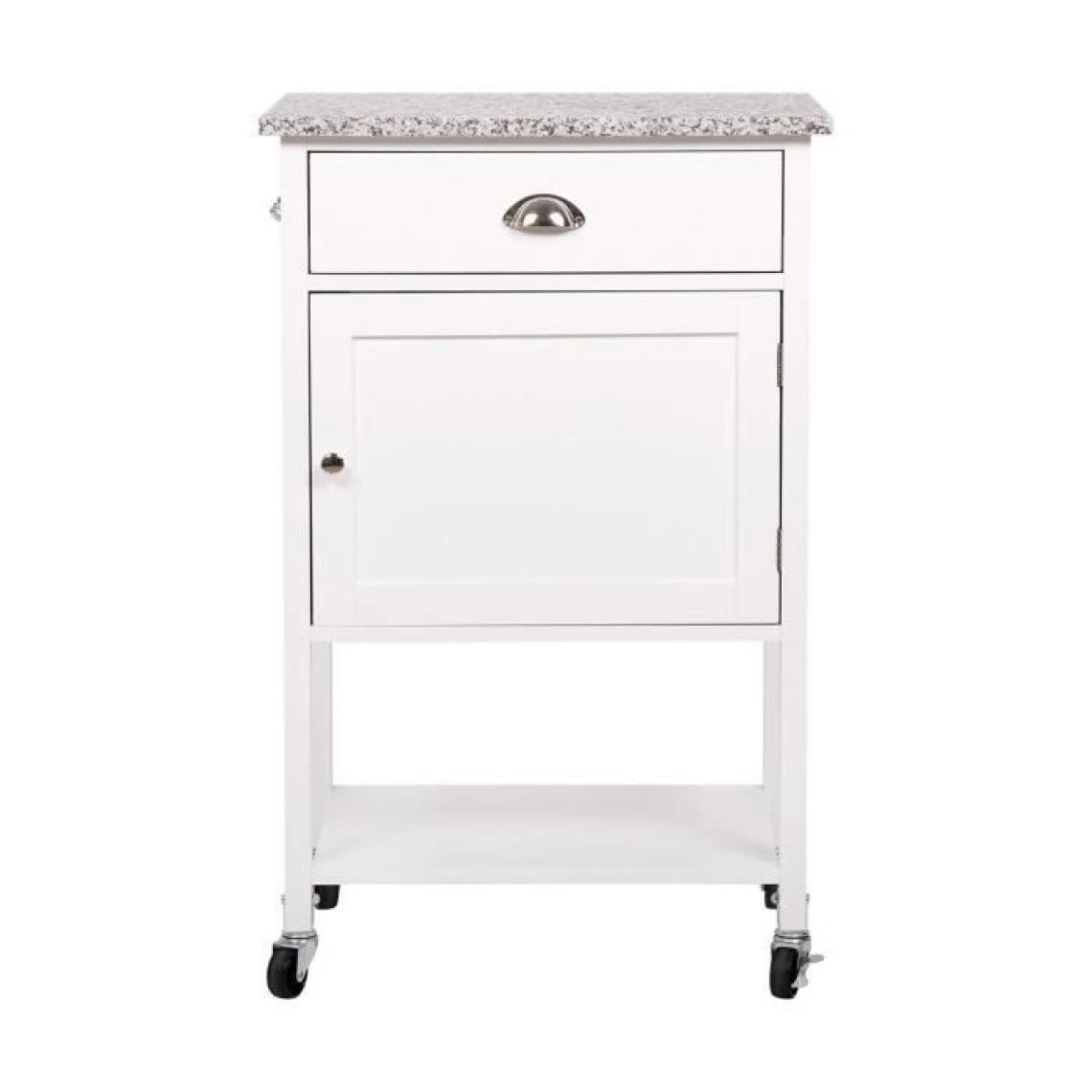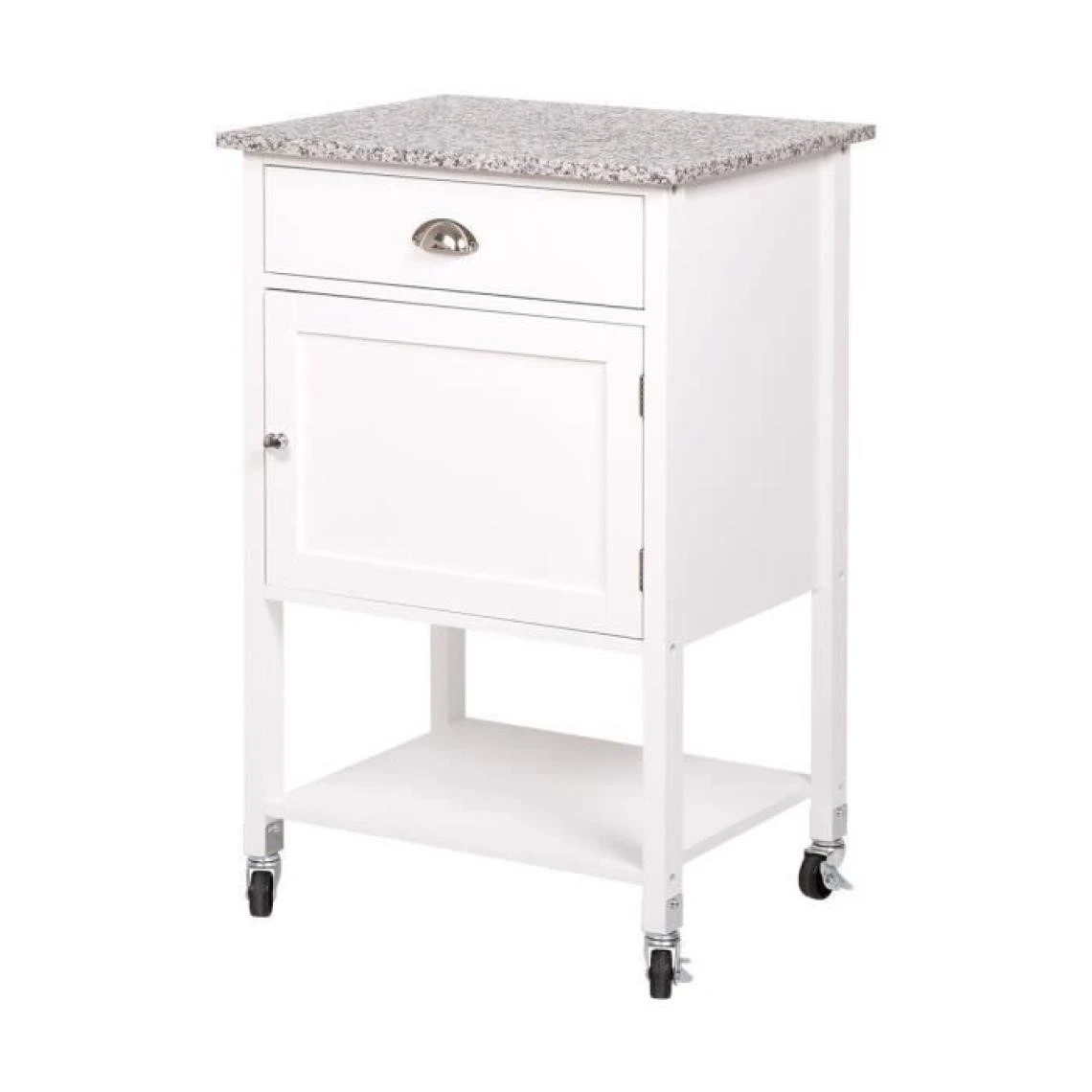 POLKA desserte de cuisine 1 porte 1 tiroir 1 étagere avec top en granite et structure en mdf coloris laqué blanc et accessoires en métal