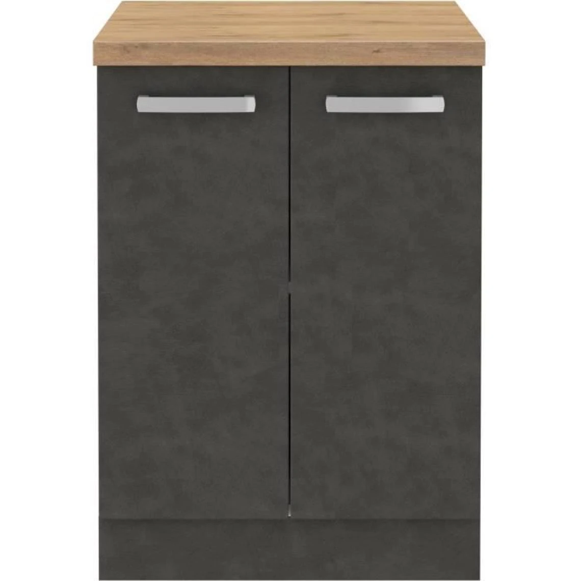 meuble bas LASSEN 2 portes battantes largeur 60cm hauteur 85cm profondeur 51,6cm avec plan de travail stratifié épaisseur 28mm profondeur 60cm coloris gris mat