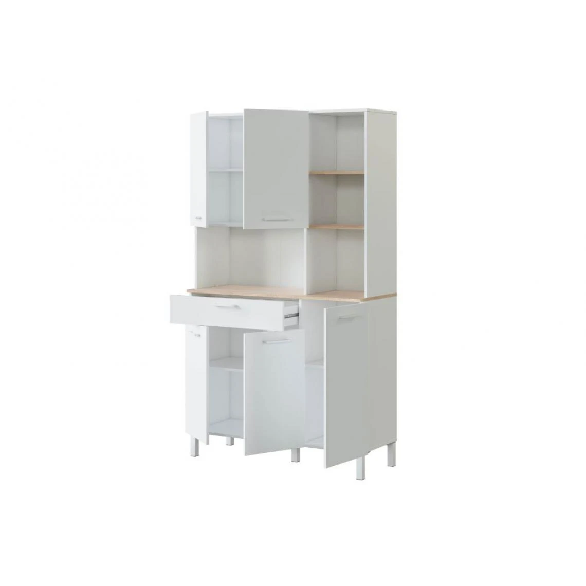 Points forts Usinestreet Buffet de cuisine ÉMILE 5 portes et 1 tiroir L108 x H186cm – Blanc / Bois