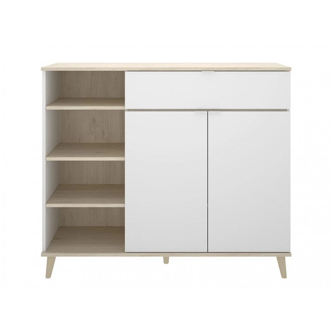 Points forts Vente-Unique Buffet de cuisine WAJDI – 2 portes, 1 tiroir et 4 niches – Blanc et chêne