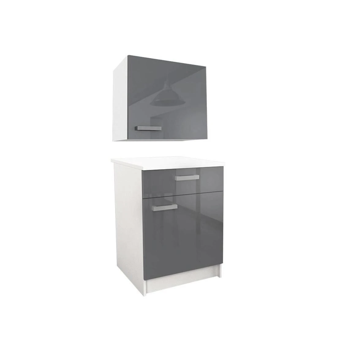 Points forts Vente-Unique Caissons de cuisine – 1 meuble bas & 1 meuble haut – 2 portes & 1 tiroir – Gris et blanc – TRATTORIA