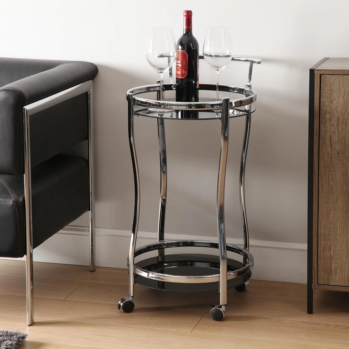 Chariot de cuisine pour servir dans la salle à manger ou le salon. Cette serveuse est faite en verre trempé et pieds en métal est un accessoire idéal pour n’importe quelle maison. Sa conception et taille le rendent simple, multifonctionnel et facile à nettoyer
