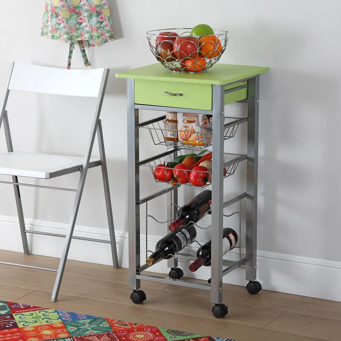 Chariot de légumes de cuisine conçu pour toute cuisine ou salle à manger. Notre chariot fait en bois recouvert de PVC et métal est un accessoire idéal pour n’importe quelle maison. Sa conception et taille le rendent simple, multifonctionnel et facile à nettoyer