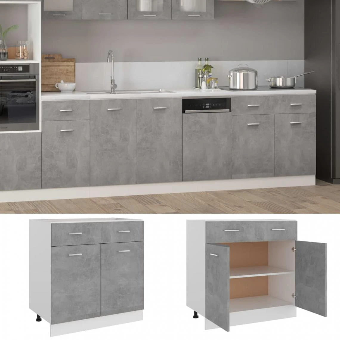 Points forts Vidaxl vidaXL Armoire de plancher à tiroir Gris béton 80x46x81,5 cm Aggloméré