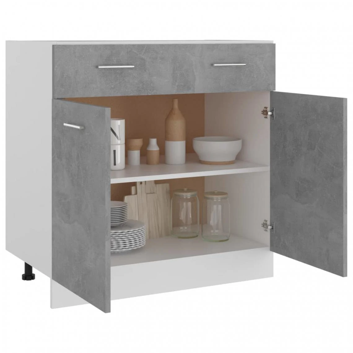 Cette armoire de plancher à tiroir, au design simple, optimise votre espace de cuisine et offre un espace de rangement suffisant pour vos effets personnels ! L’armoire de rangement est durable et fonctionnelle, gardant votre cuisine plus organisée. L’armoire a un tiroir et deux étagères, offrant suffisamment d’espace pour stocker des bols, des assiettes, des casseroles et d’autres appareils de cuisine. Il y a deux portes à l’extérieur des étagères pour garder les articles entreposés propres. De plus, cette armoire est facile à nettoyer avec un chiffon humide. Veuillez noter que le plan de travail n’est pas inclus dans la livraison.