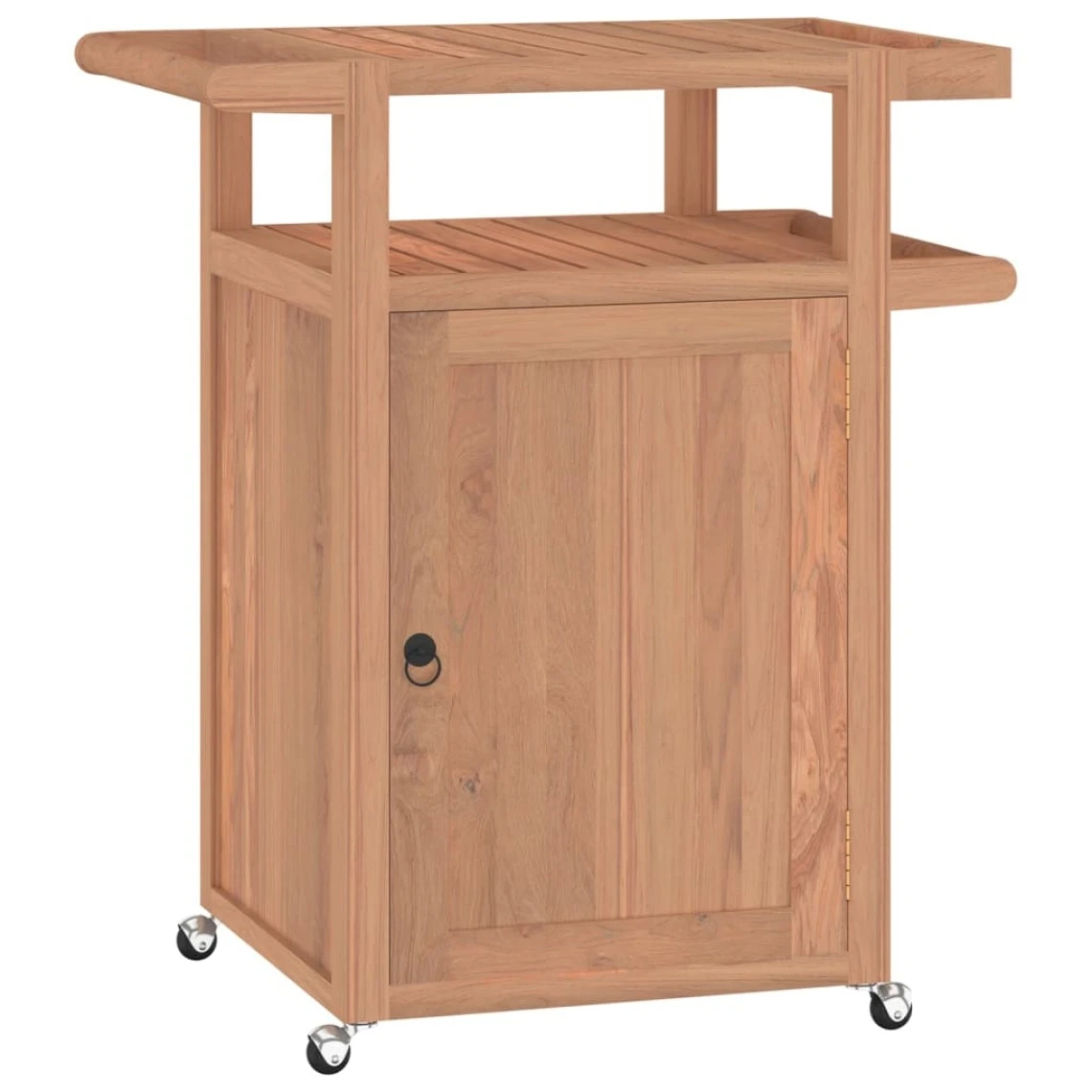 Utilisez ce chariot de bar en bois pour créer une touche distinctive et ajouter plus d’espace de rangement à votre cuisine. Bois de teck massif : le bois de teck massif est un matériau naturel magnifique. Il a été chevronné, séché au four, puis sablé finement pour lui donner une apparence très lisse. Le bois de teck est connu pour sa résistance exceptionnelle et sa résistance aux intempéries.Grand espace de rangement : les 2 compartiments et les 2 étagères offrent un espace de rangement pour placer votre porte-bouteilles, livres de cuisine et autres ustensiles de cuisine bien organisés et à portée de main.Design pratique : avec 4 roulettes rotatives, le chariot peut être déplacé de manière flexible. Le porte-serviettes sur le côté vous permet de garder vos serviettes à portée de main.Cadre robuste : le cadre en bois assure robustesse et stabilité. Remarque :Chaque produit est livré avec un manuel de montage dans la boîte pour un montage facile.