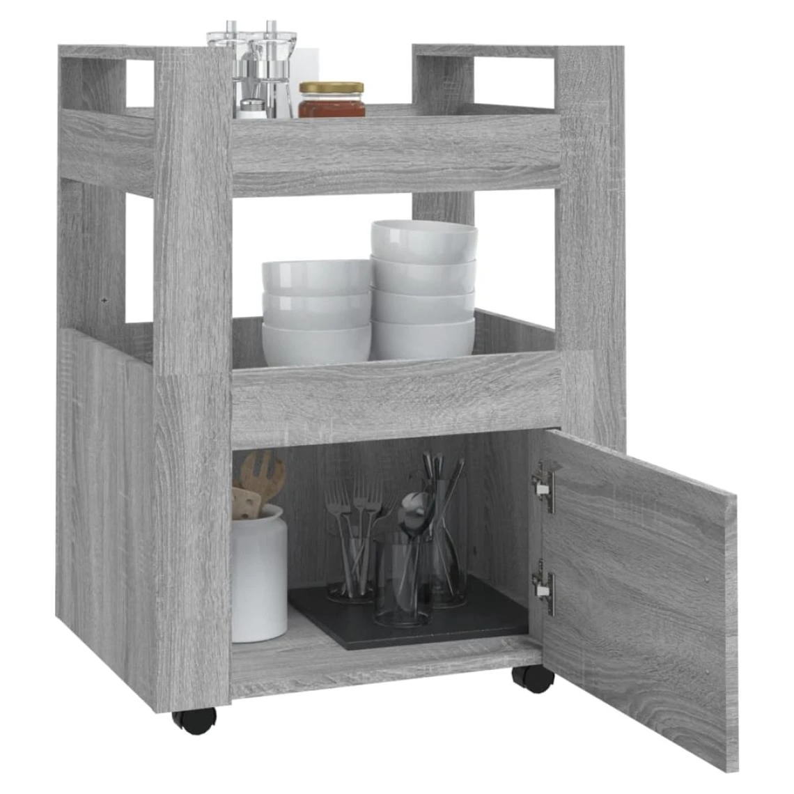 Points forts Vidaxl vidaXL Chariot de cuisine Sonoma gris 60x45x80 cm Bois d’ingénierie