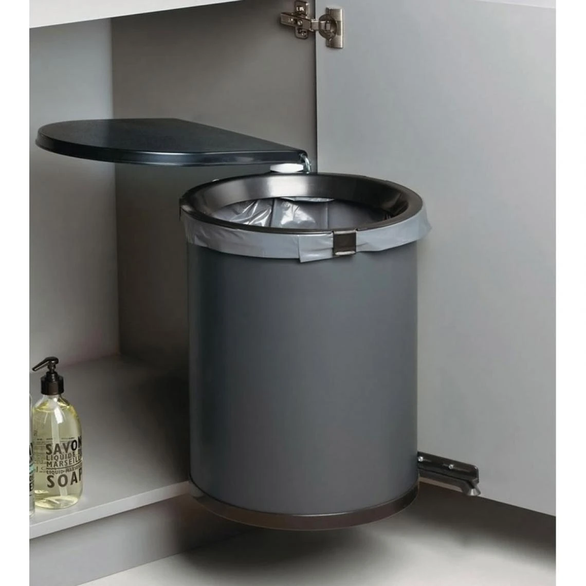 Poubelle de cuisine ronde de 30L à ouverture automatique. La poubelle s’ouvre en même temps qua la porte.