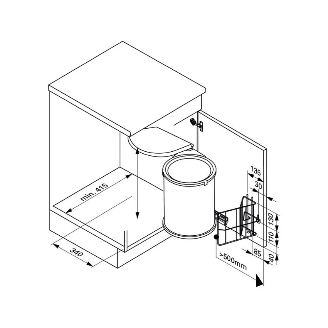 Cette poubelle pivotante en PVC est réversible et peut se fixer soit sur une porte gauche comme droite.