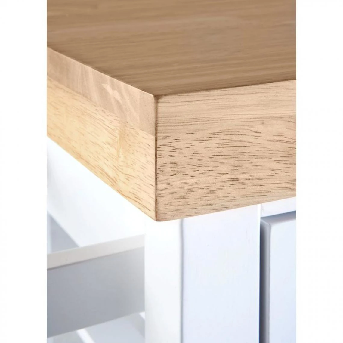 Peu encombrante, cette desserte ne prend pas de place dans la cuisine. Avec ses quatre roulettes pratiques, dont deux sont munies de freins, vous la déplacez facilement. Simple à nettoyer, cette desserte blanche est surmontée d’un plateau de style boucher confectionné en bois d’hévéa lamellé collé d’une épaisseur de 5,7 cm. Vous pourrez ainsi réaliser vos recettes directement dessus et y passer un coup d’éponge une fois vos tâches terminées. La hauteur de cette desserte de 91,5 cm permet de rester debout et de cuisiner confortablement. Elle fera office de plan de travail mobile très pratique.